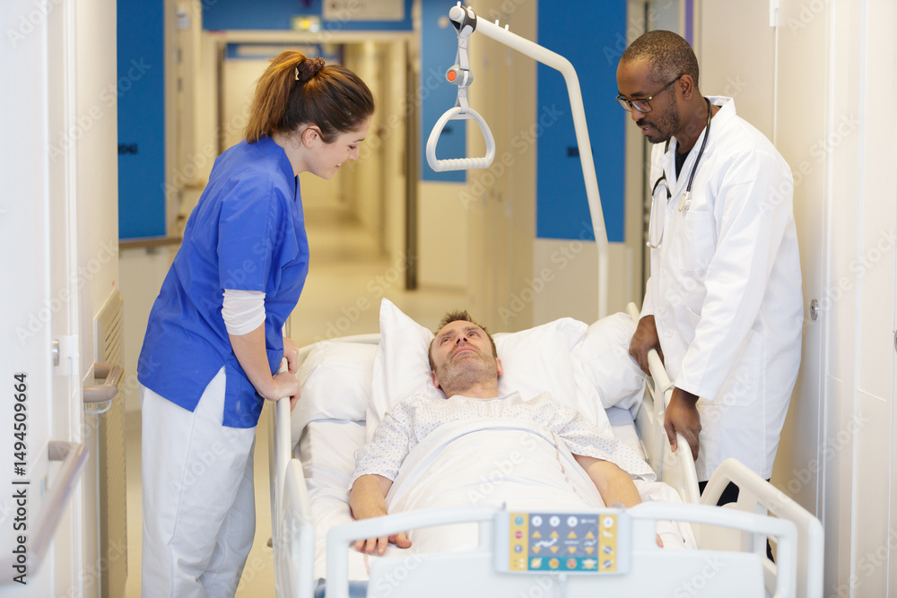 male nurse pushing stretcher with patient