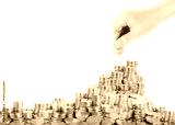 Image of a gold coin in hand and a pile of gold coins PNG transparent...