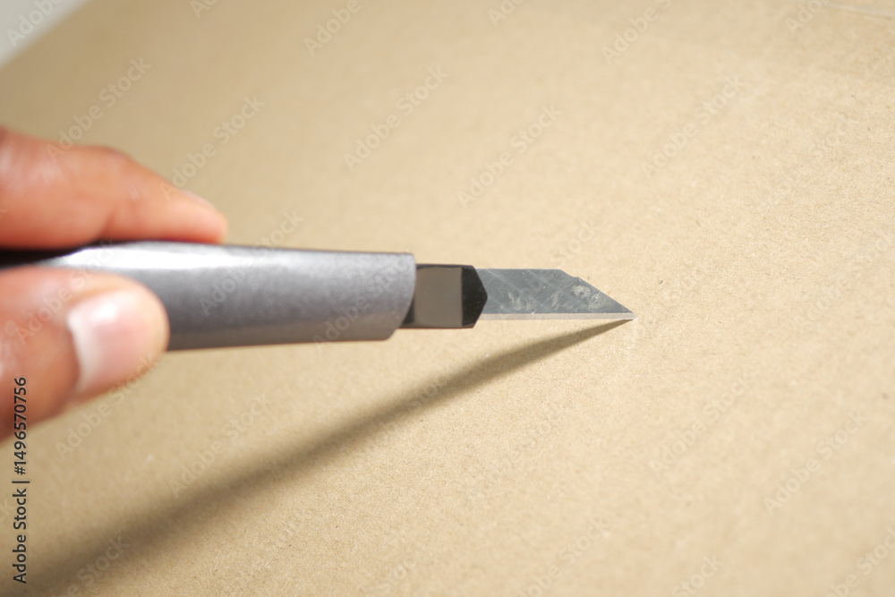 Cutting cardboard with a sharp blade for crafting project