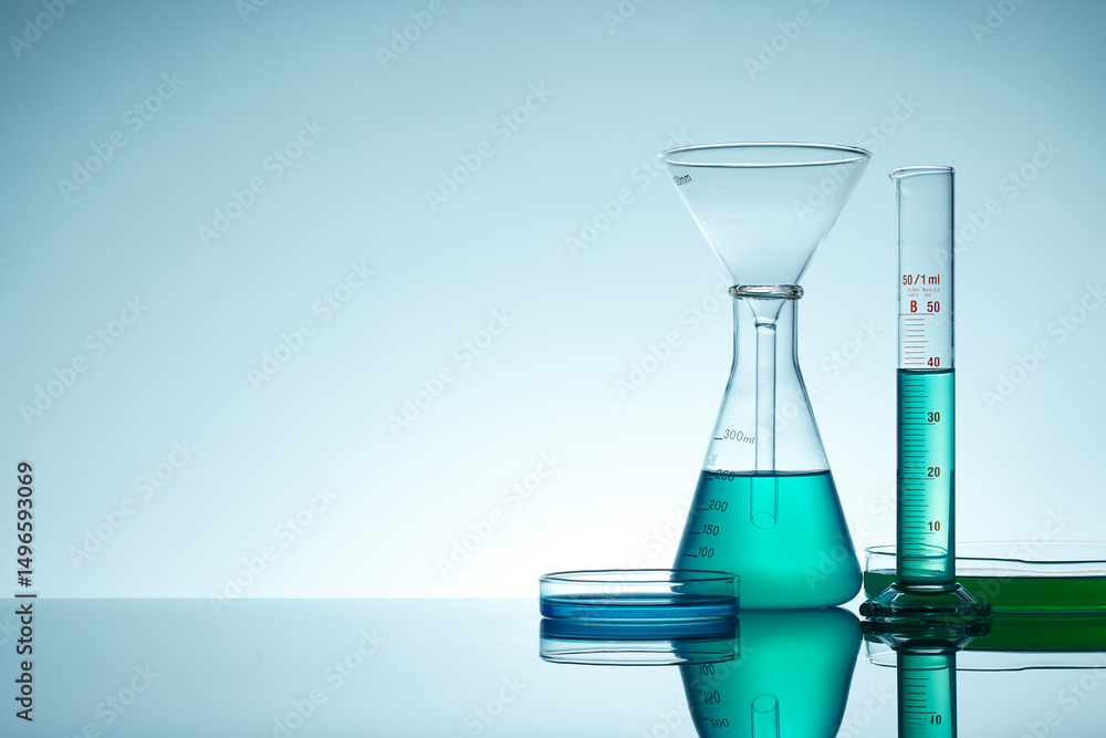 Colorful Laboratory Glassware for Modern Science and Research Background.