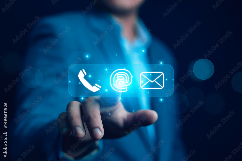 Businessman icons (address, phone, email, mobile, call) contact customer support, email website help, business contact service digital technology, contact us, 24 hours online customer service center c