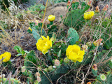 Blooming cactus with bright yellow flowers and sharp spines