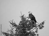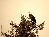 Mature Bald Eagle ( Haliaeetus leucocephalus ) sitting in tree, looking down,