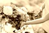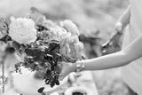 bouquet, people and floral arrangement concept - close-up on hands of young women decorating beautiful bouquet of fresh summer yellow and white roses, pink peonies, pruning shear in female hand