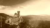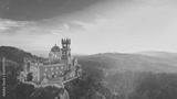 Aerial panorama of colorful Palacio da pena castle,Pena National Palace,Sintra, Lisbon, Portugal, Europe.Royal castle.UNESCO World Heritage Site and Wonder of Portugal.Travel Europe,European places
