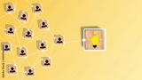 Conceptual of creative idea and innovation. Creative idea and innovation concept. Hand assembled wooden cube block with a light bulb icon on top of a pyramid and a question mark