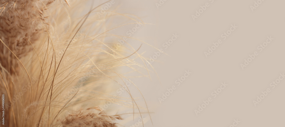 Smoke soft focus dry wild grass. Nature beige, brown neutral natural beige blur horizontal background.