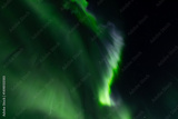 Fairy winter mountains with snowy fir-trees and incredible Northern lights in starry sky. Christmas nightscape with Polar lights. Aurora Borealis