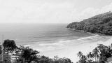 Aerial view beautiful Karon noi Beach in Phuket Thailand, Landscape of patong city phuket in sunny summer day time, Beautiful tropical sea,High angle view Sea beach Sunset in the evening
