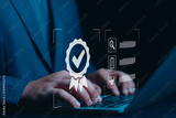 Hand shows sign of top service Quality assurance, Guarantee, Standards, ISO certification and standardization concept, satisfaction, service experience, show the standards of products and services.