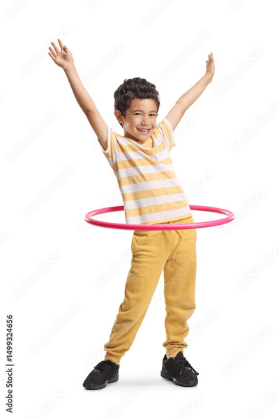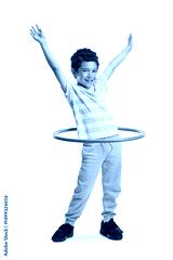 Asian boy spinning a hula hoop