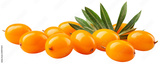 Buckthorn isolated png. Sea buckthorns heap on white or transparent background.. Group of seabuckthorn berries with leaves no background. Full depth of field.