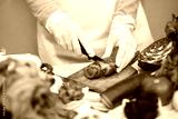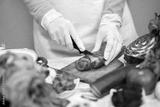 Female with gloves slicing tomato