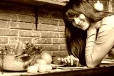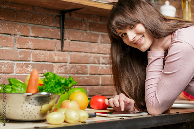 woman is making online shopping by tablet computer . Housewife found new recipe for cooking in a kitchen