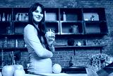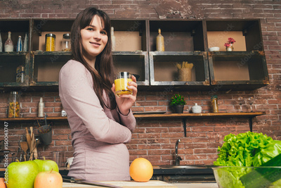 Woman holding a glass of orange juice in the kitchen. The concept of a healthy diet. Diet