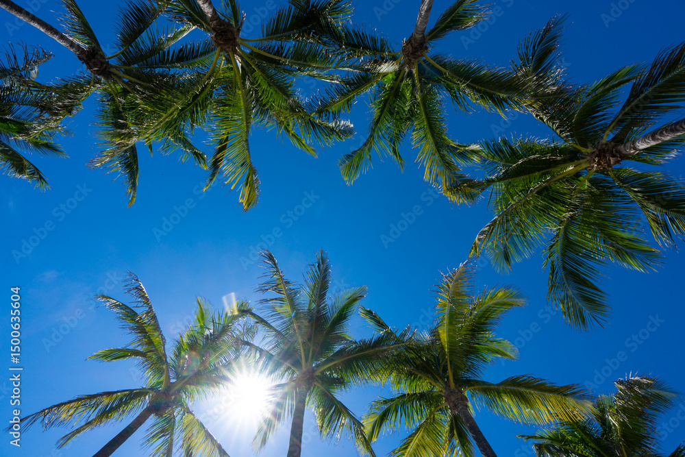 Palm background. Summer paradise concept. Green jungle. Tropical background. Exotic summer vibes. Palm wallpaper. Palm leaves in sunlight. Tropical design pattern. Bali summer. Tropical design.