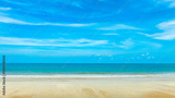 Nature of the ocean and blue sky Summer with sunshine, sandy beaches, clear blue waters sparkling against the blue sky. on an island with good ecology and environment Background for summer vacation