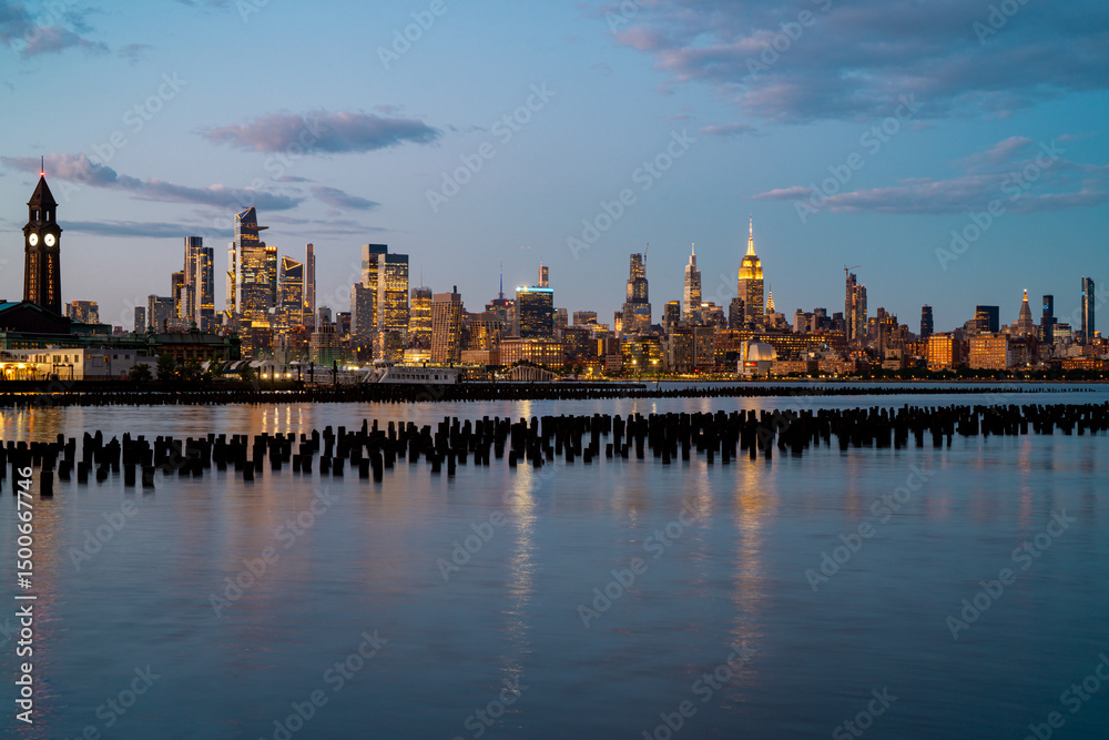 Manhattan skyline, New York, United States. Panorama view of New York city skyscrapers in Manhattan. USA NYC. American big city. Lower NYC skyline. New York cityscape. America, New York City.
