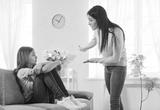Mother and teen daughter conflict at home, scolding grown up child, angry mum feeling stressed, misunderstandings, generational gap, difficulties in relationships, serious disagreement or argument