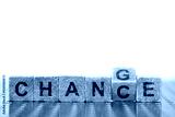 Holzwürfel sind beschriftet mit dem Aufdruck Chance oder Change, als Symbol für Möglichkeit auf einen Wechsel