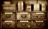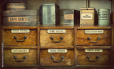 Bottles on the shelf in old pharmacy. Retro style.