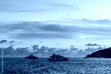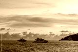 Sonnenuntergang mit Booten an der Amalfiküste in Italien