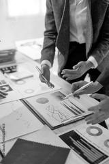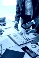 Business team analyzing financial charts and graphs, discussing company performance and making strategic decisions
