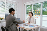 Business professionals analyzing investment graphs and financial charts on laptops during a strategic meeting in a modern office environment.