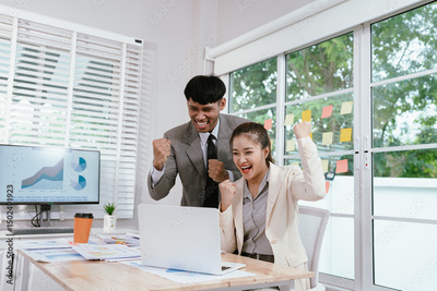 Business professionals analyzing investment graphs and financial charts on laptops during a strategic meeting in a modern office environment.