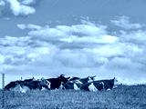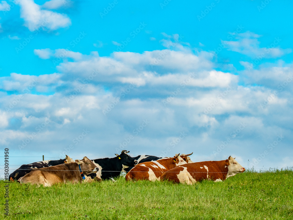 Kühe und Rinder grasen auf einer Weide