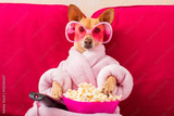 dog watching tv on the couch