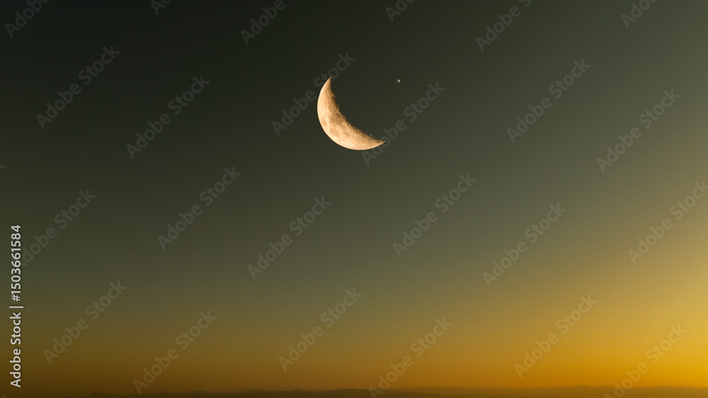 Background night sky of with crescent moon,and stars .Background Greeting card for the holy month of Ramadan of islam