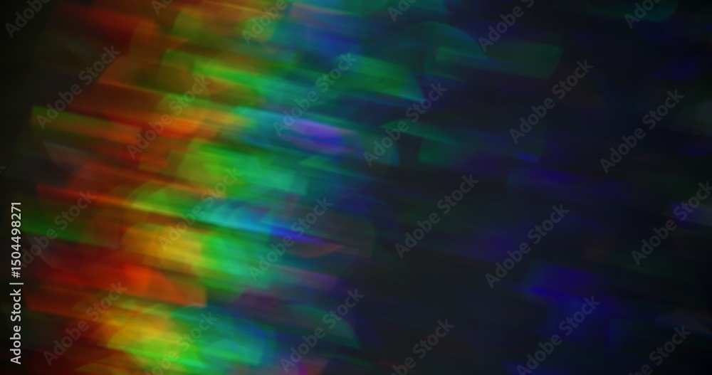 Rainbow glow. Blur light texture. Defocused colorful green blue red lens flare on abstract bokeh abstract background.