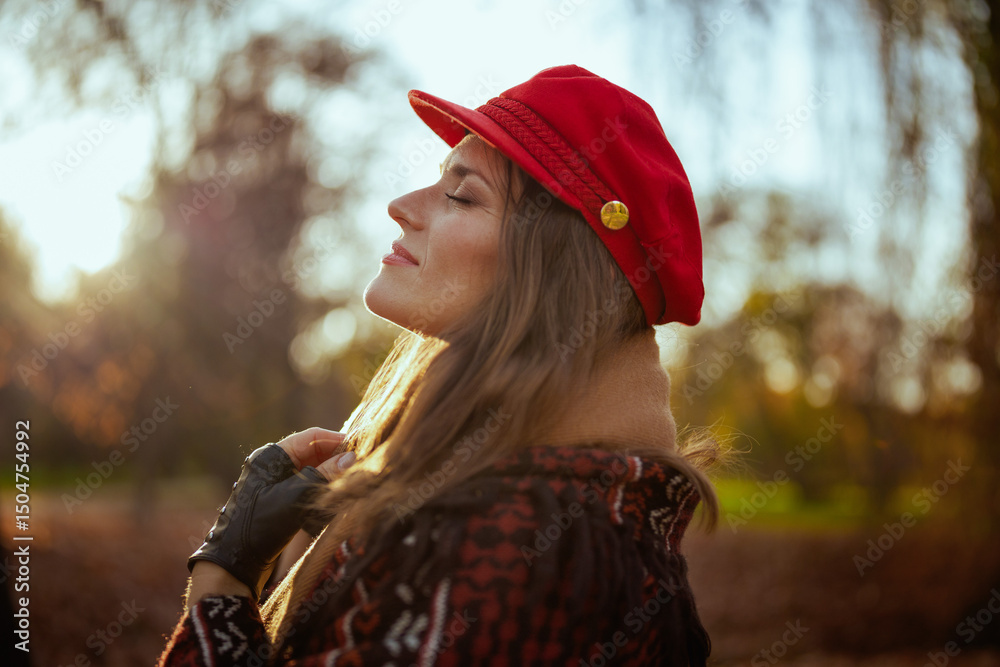 relaxed modern woman in red hat with scarf