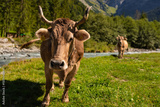 Dairy cows. Cow at meadow. Cattle in grass field. Cow in grassy pasture. Cow pasture outdoor. Cows graze on summer meadow. Rural landscapes with cows. Cows in pasture. Cattle cow grazing on farmland.