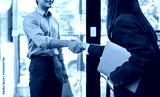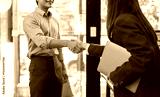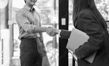Happy young business woman asian manager handshaking client at meeting. Smiling female hr hiring recruit at job interview, insurance agent, lawyer making contract deal at work with business handshake.