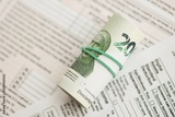 Mexican pesos money bills in big amount lies on table with tax forms close up
