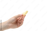 PNG, One corn stick in female hand, isolated on white background
