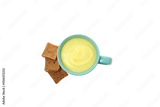 PNG,Cheese soup in a cup with croutons, isolated on white background