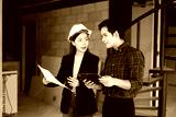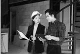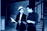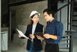 Sustainable architects presenting green building models, solar panels, and recycling symbols. Future clean energy and smart city