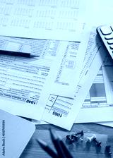 Planning, Budget, and Tax Concept. Individual Income 1040 Tax Form For Have Income According to United States Law. Tax form, calculator, and pen on desk. Season to pay, and deadline for tax payment.
