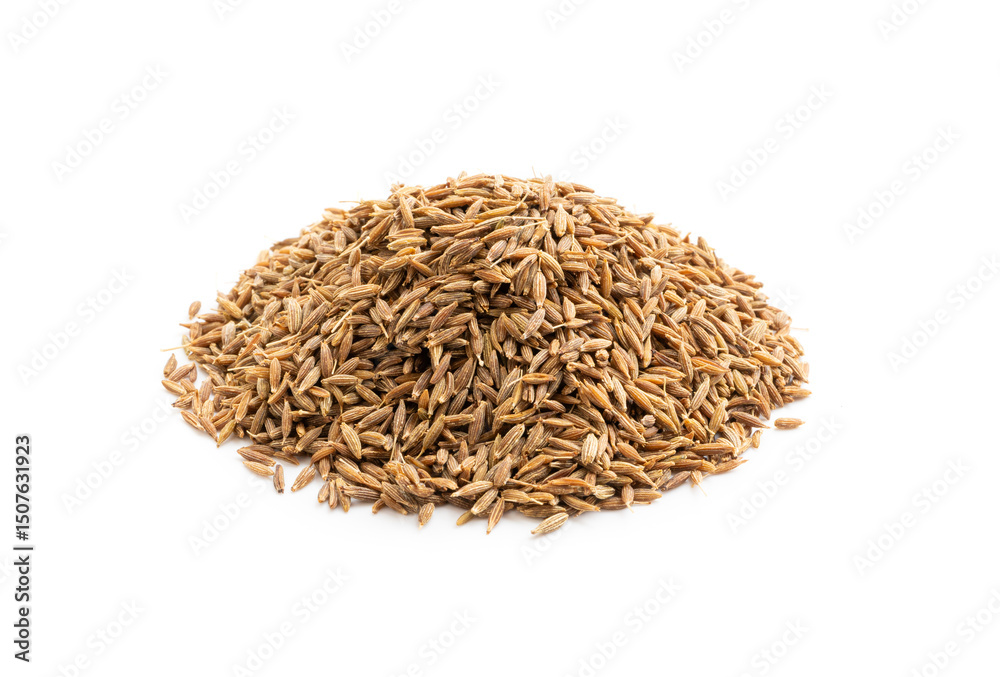 Cumin seed isolated. Caraway or fennel dry seeds close up, zeera macro, Indian cumin or zira grains