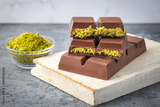 Dubai chocolate, milk chocolate filled with pistachio paste and kunefe