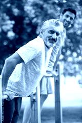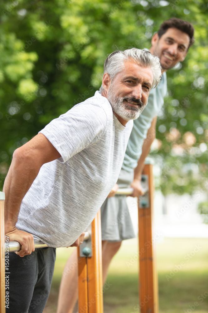 2 men team are working out together