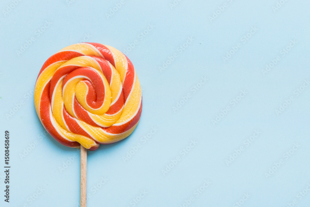 Set of colorful lollipops on colored background. Summer concept. Party Happy Birthday or Minimalist Concept