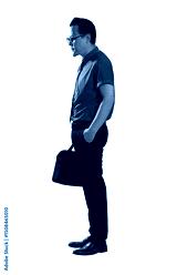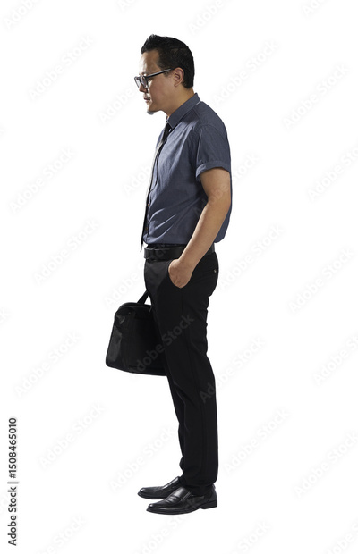 Businessman standing with hand in pocket and carrying briefcase on transparent background