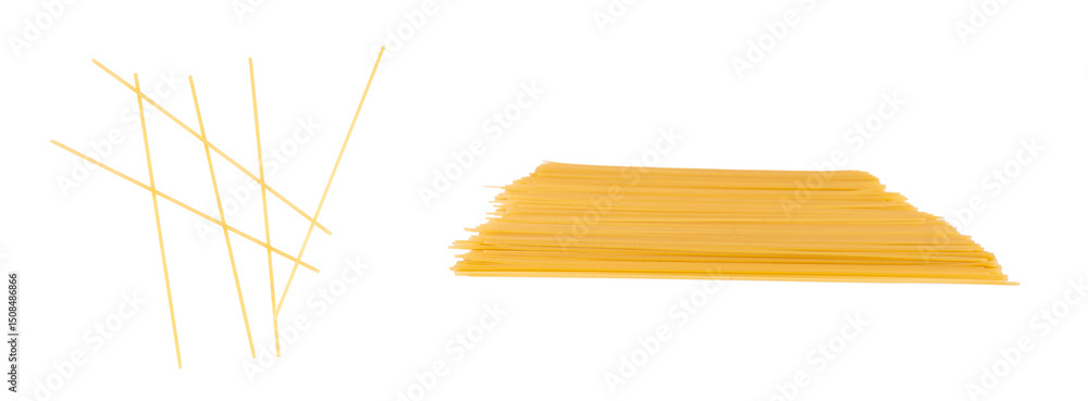 Raw spaghetti isolated, dry spagetti, long wheat noodles, uncooked italian macaroni bundle