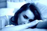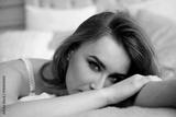 beautiful young woman lying in bed and looking at the camera. Close-up