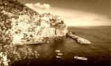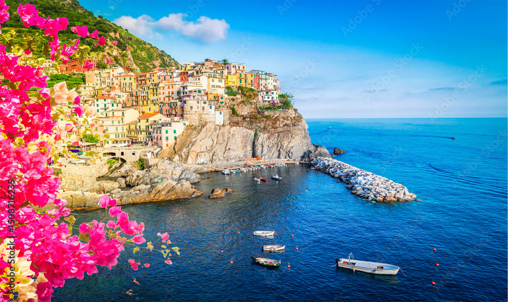 Manarila picturesque town of Cinque Terre with flowers, Italy