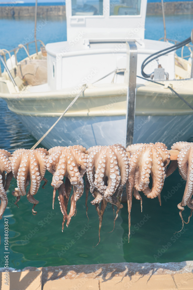 Sundried fresh octopuses - typical dish of Paros island, Greece